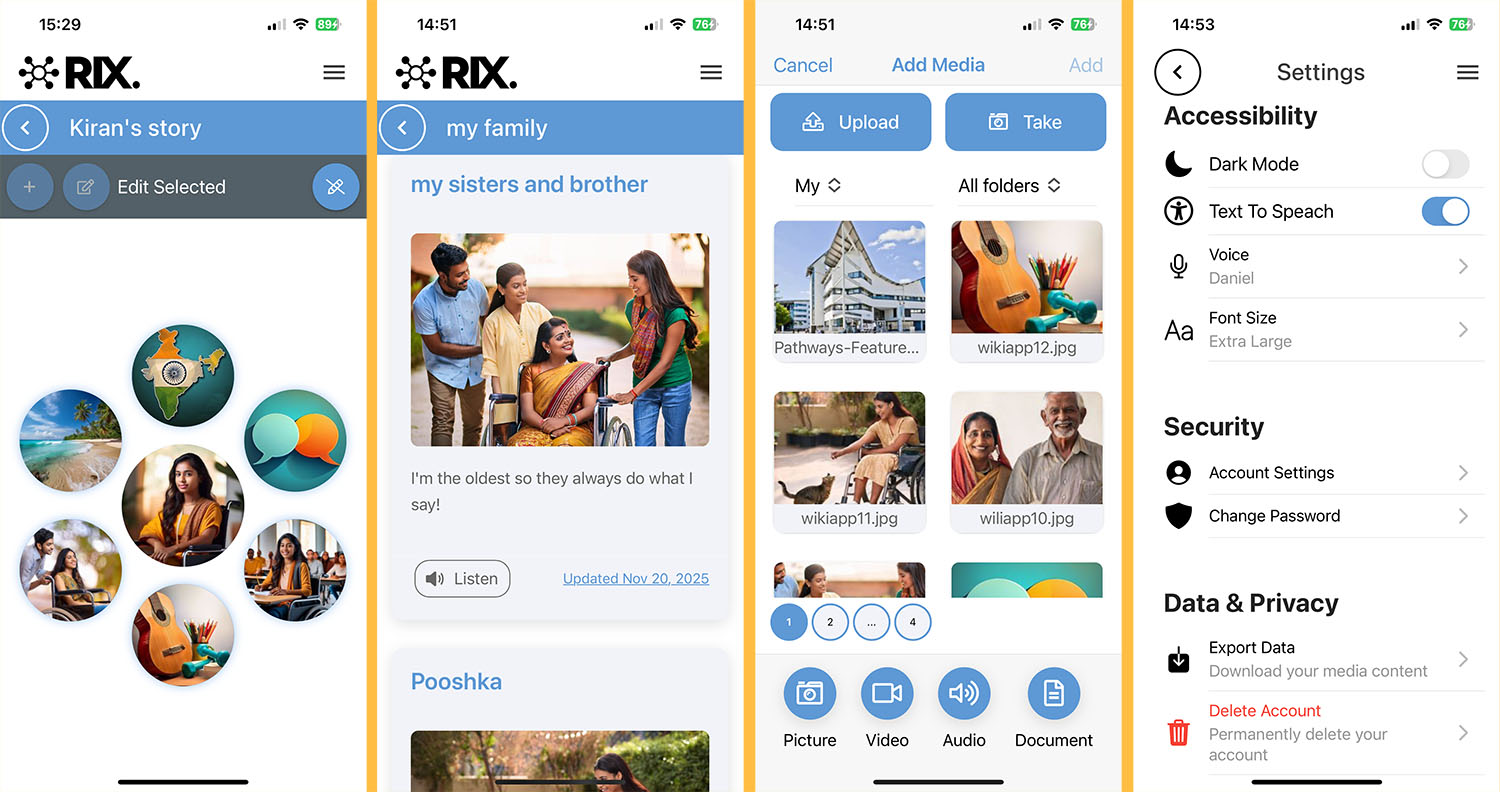 The Rix Wiki is a digital About Me tool that helps people share their story and show what good support looks like using words, pictures and videos. Its accessible design makes it easy for anyone to create and update their Wiki using the mobile app.